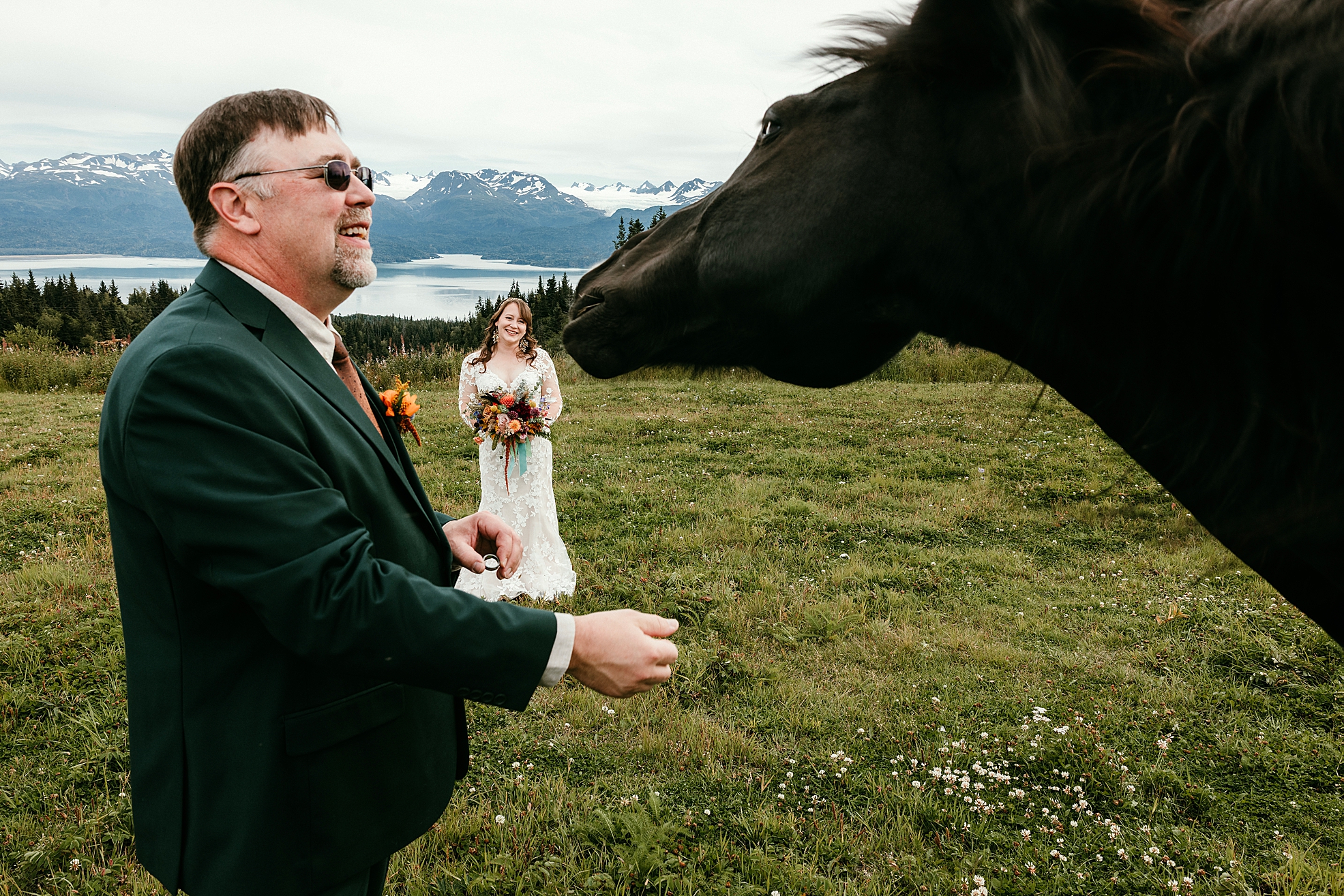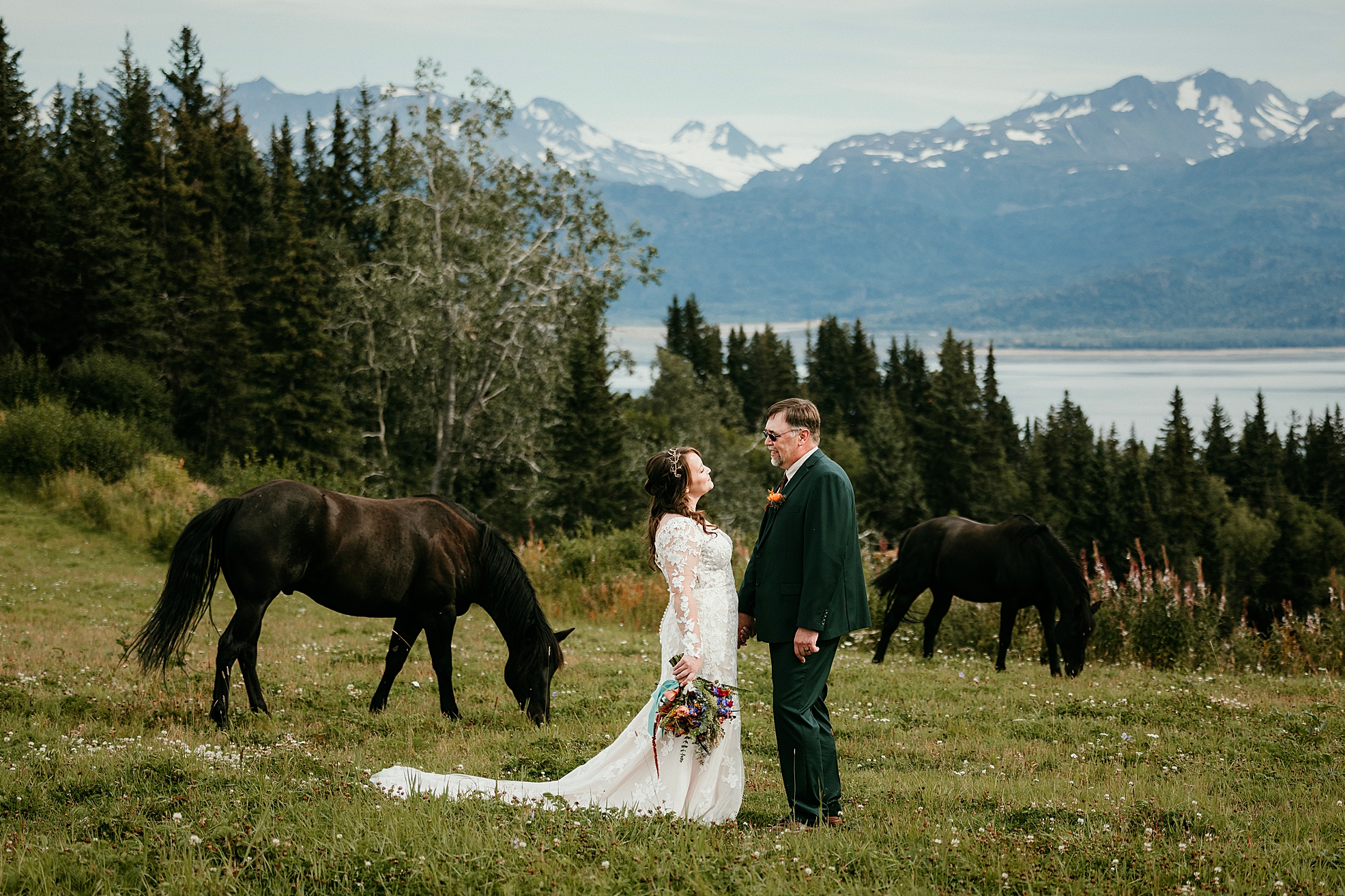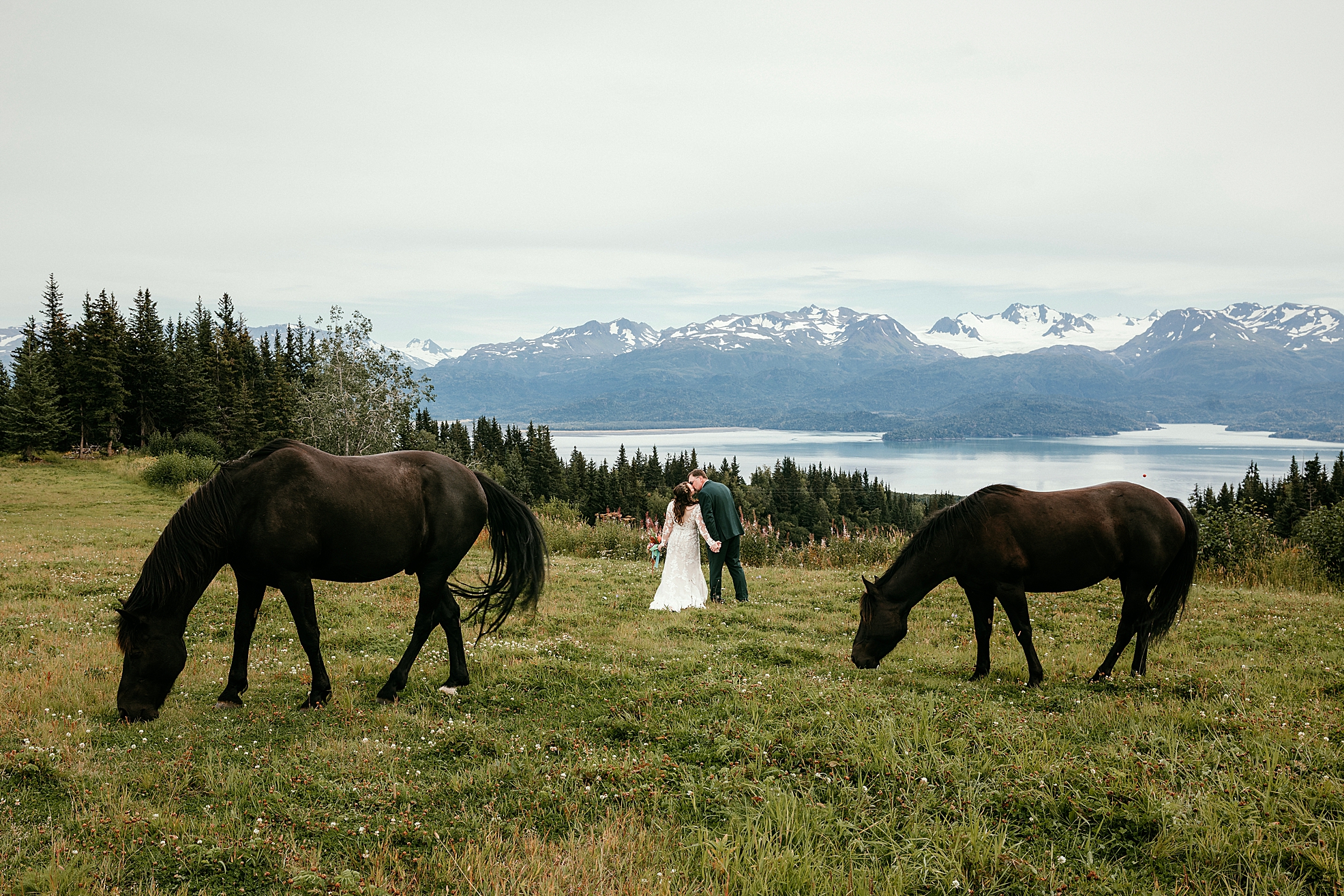 AK Diamond Ranch is one of my very favorite wedding venues featuring rolling acres of countryside near Kachemak Bay. The ranch provided a backdrop of mountains, open sky, and quiet beauty that could be felt in every frame.