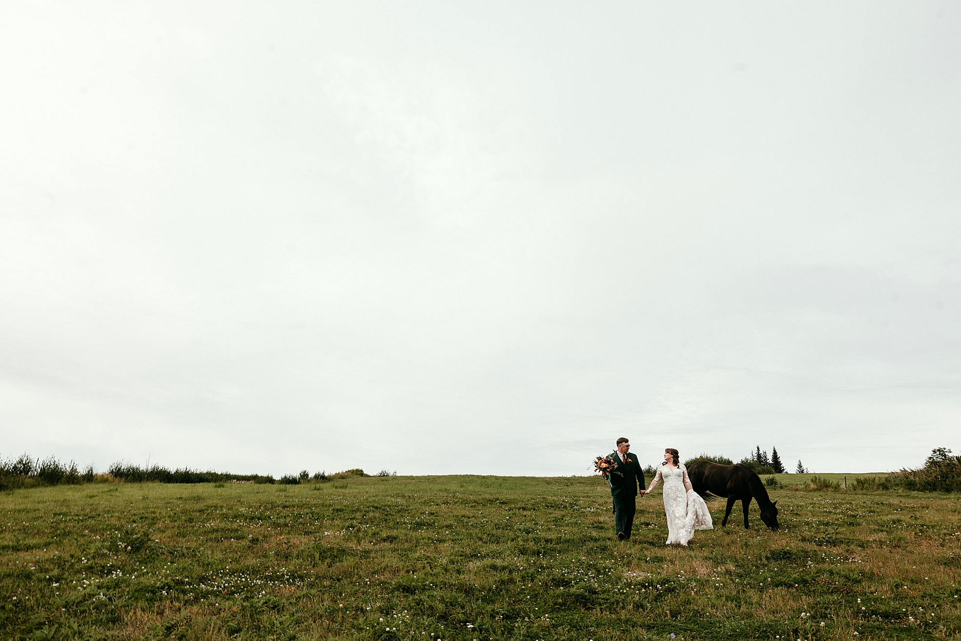 As you can see, the horses were such a vibe and definitely supporting actors in this story! Taylor and Darrel were beside themselves and the whole scene made those moments together feel pretty stinkin’ magical. Walking together through the fields wasn’t just a photo opportunity, it was a pause — a gentle reminder to slow down and really take in the day and each other. The way these two looked at one another felt like a chapter from a love story. I couldn’t get enough.